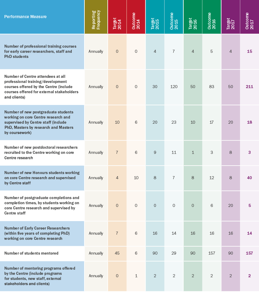 We strive to provide a rich training experience for early career researchers and over the Centre’s seven-year life we will train 24 postdoctoral fellows and 80 PhD students. Eighteen new PhD researchers were welcomed to the Centre this year, along with three new postdoctoral researchers.